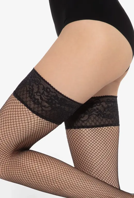 Ciorapi cu banda adeziva din dantela siliconata, model plasa, vara intaritura la varf.