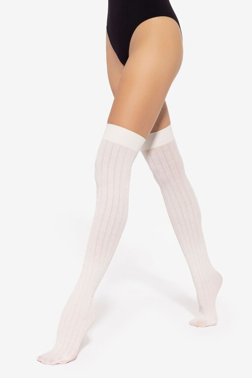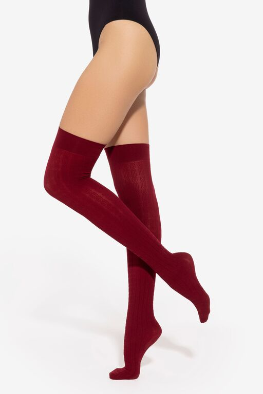 Sosete peste genunchi 60 den cu model, realizate din fire de tip de elastan impletite, mat.