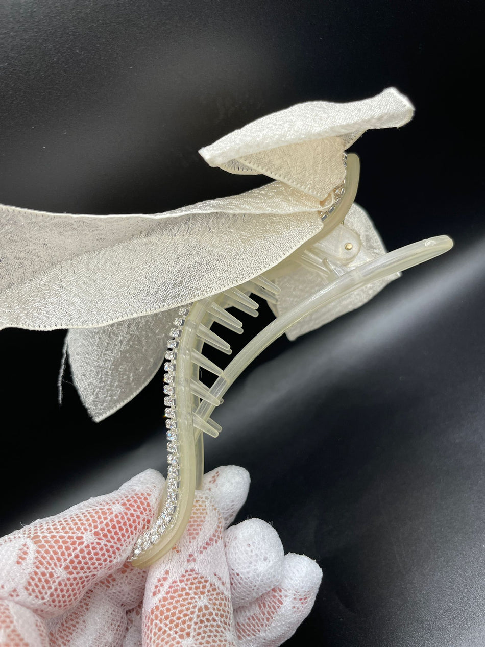 Materiale folosite: clama este realizata dintr-un satin sintetic, plastic si strasuri