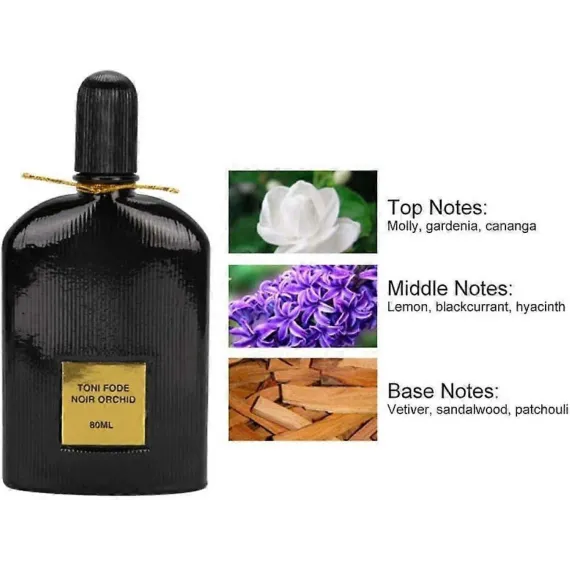Debutează cu o combinație rafinată, de bergamotă zemoasă, cu coacăze negre, ylang-ylang senzual și trufe delicioase. În inima apei parfumate veți găsi o armonie impresionantă între tonurile de fructe și florile de lotus, de gardenie și de orhidee. Baza senzuală este compusă din lemn de santal, cu vetiver, tămâie și paciuli. Opulența evocatoare a parfumului orhideei negre este dată de ciocolata amăruie mexicană, acompaniată de vanilie și de un strop de tămâie.Note varf bergamota, trufa, Ylang-Ylang, coacaze negre, gardenie, iasomie, flori de mandarin, lamaie de Amalfi Note inima lotus, orhidee, tonuri de fructe, gardenie, iasomie, condimente, Ylang-Ylang Note baza patchouli, lemn de santal, vanilie, vetiver, cihlimbar, mosc alb, ciocolată mexicană, tămâia Grupe de parfumuri orientale, florale