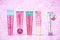 Este un set de produse pentru buze de la essence, cu un vibe foarte feminin, dulce și jucăuș, în nuanțe predominante de roz și lila pastel.