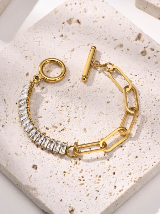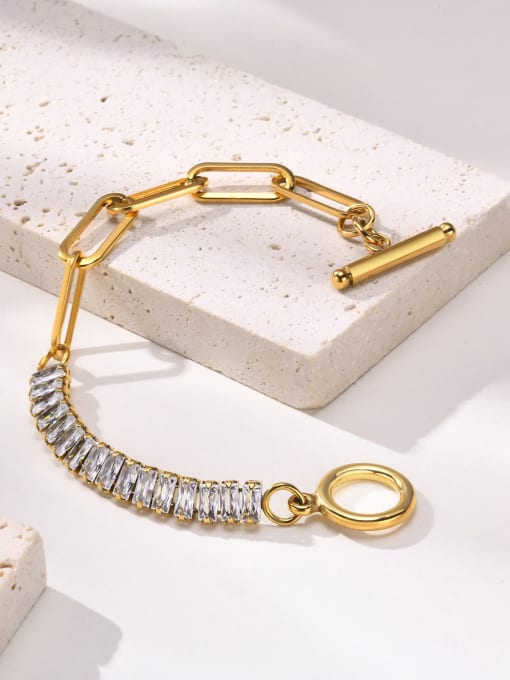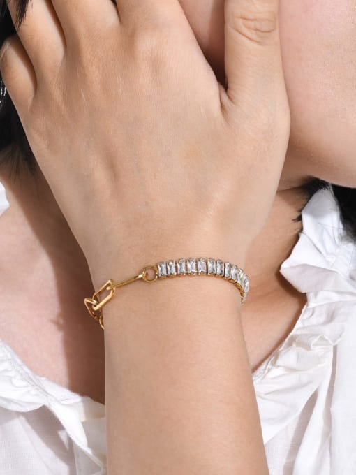 Brățară din oțel inoxidabil aurie din zale si cristale zirconiu Ema